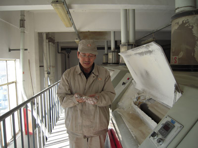 冯国良,男,1963年8月出生,中共党员,高中学历,现任北京古船食品公司制造一部车间班长、制粉技师。自1981年参加工作以来,他刻苦学习,勤奋工作,积极钻研制粉技术,成为企业技术攻关带头人。1996年荣获北京市“五一”劳动奖章,2000年荣获北京市劳动模范荣誉称号,2005年被国务院授予“全国劳动模范”。 一、刻苦学习,努力提高技能水平 为了尽快成为技术能手,冯国良同志如饥似渴地学习专业知识。有一年,北京粮食系统举办高级制粉工脱产培训班,冯国良特别想借此机会,学习现代制粉技术。可是,车间里人手紧、任务重,抽不出人员。于是他找到领导,诚恳地说:“作为一名生产班长,我要尽快学习新知识,掌握新技术。请领导批准我白天到学校学习,晚上回厂上班,绝不影响工作”。就这样他每天往返30多里路,白天学习,晚上跟班生产。通过一年的辛勤努力,他在完成生产任务的同时,取得了高级制粉工证书。 随着人们生活习惯的改变和消费水平的提高,各种专用面粉逐渐走俏。生产专用粉对设备精度要求较高,国内生产厂家均采用进口设备。考虑到进口设备需要大量资金,企业有困难。冯国良决定用现有国产设备生产专用粉,公司领导充分肯定了他的想法,鼓励他大胆实践,早日生产出专用粉。 说到做到,他一头扎进车间,对36个出粉点一个一个地取样分析,对平筛,一个仓一个仓地观察,一部磨子一部磨子地查找数据,适时合理地调整工艺流程,使生产工艺和设备配备达到最佳状态。每天晚上他都查资料、找数据到深夜。经过刻苦钻研,反复试验,终于用国产设备生产出专用粉,当年就为企业增加效益300多万元。 二、钻研业务,排忧解难勇争先 多年以来,冯国良同志不仅参加和主持了公司多项技术改造工作,每当遇到急、难、险、重的任务,他总是挺身而出。1993年,面粉厂进行设备改造,由于三楼风机底座太坚固,空间狭小,又怕损毁设备,施工队要延长工期,增加施工费用。熟知设备情况的他马上找到领导,要求自己干。厂领导担心地说:“这机座是70年代用麻花钢和角铁焊在一起,外面用水泥包着石子浇灌加固的,你们又没有干过,能成吗?”他说:“请领导放心,再不好干的活我们也要把它啃下来!”。他和工友们一人手扶钢钎,一人抡起大锤就砸,一锤一道白印。他的双手很快磨出了血泡,胳膊震得生痛,晚上回家,手上的血泡还在往外溢着鲜血,吃饭连筷子都拿不住。最后经过五天的奋战,终于啃下这块硬骨头。 2003年,非典突袭北京,一时间,面粉供应告急,公司根据市政府指示,每天向市场供应1000吨面粉。负责生产的冯国良同志带领工人,日夜坚守在生产车间,连续两个月不间断生产。期间父亲因心脏病发作住院,他都顾不上照料,只是打个电话吩咐一下家人好好照料,就又全身心的奋战在生产第一线,圆满地完成了“抗非典,保供应”的政治任务。 三、技术革新,增产节约做贡献 为打造中国名牌,公司制定出了一套高于国家标准的企业内控标准。新标准的实施也给生产环节带来了问题——出粉率下降,按照制造一部一年的生产量计算,公司因此每年将损失近200余万元的效益。怎样才能既提高产品质量,又保证出粉率不降低呢?冯国良同志积极主动带领技改小组人员通过现场勘测,查阅资料,绘制图纸,最终,仅花费了不足万元设备改装费便解决了其它企业需要几十万元才能解决的问题。为使质量管理再上新台阶,他先后对有可能影响产品质量和食品安全的小麦接收与储存、小麦清理、小麦制粉和成品包装四个工序的二十个关键控制点,制定了严格的过程控制程序。实时对生产过程进行科学、有效控制,进一步稳定了产品质量,保证了食品安全,最大限度地保证了用户需求,为“古船”品牌的发展,打造责任型企业做出了新贡献。 四、言传身教,为企业培育新人 作为车间班长,冯国良同志深知,要使先进的科技成果变为现实生产力,企业中每个员工特别是一线员工具有不可替代的作用。多年来,他自觉担当起“传、帮、带”的任务,每当新职工入厂,他总要不辞辛苦,手把手的传授制粉工艺,每个月都要给工人们讲技术课,几年下来,大家的业务水平都有不同程度的提高。在2009年全国制粉工技能培训及鉴定中,他所带出的15名徒弟,全部一次性获得国家四级职业资格证书。 |