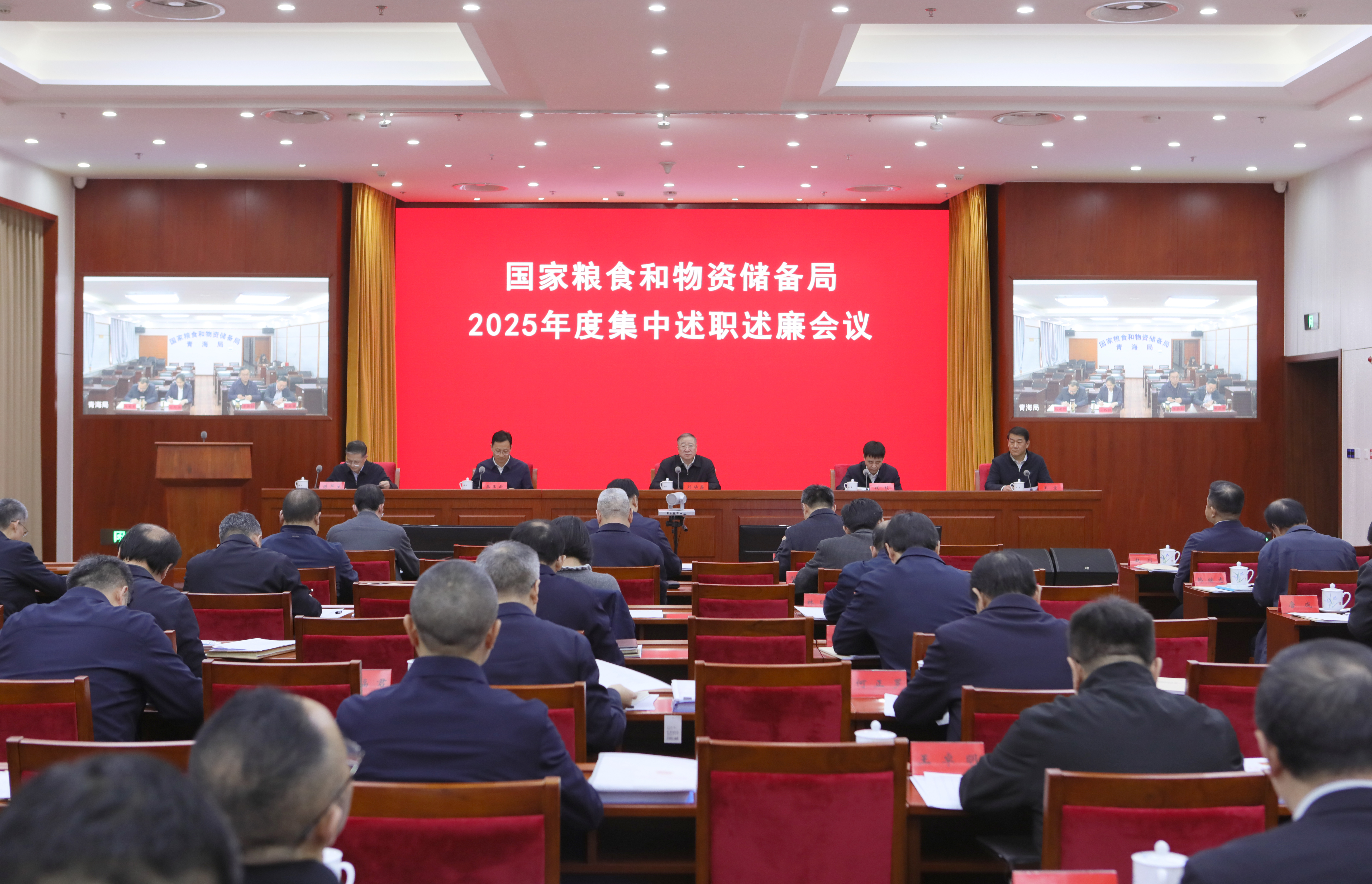 1月29日,国家粮食和物资储备局召开2025年度集中述职述廉会议。国家发展改革委党组成员,国家粮食和物资储备局党组书记、局长刘焕鑫出席会议,局党组成员、副局长钱毅主持会议,局党组成员、副局长秦玉云、王宏、陈军生出席会议。