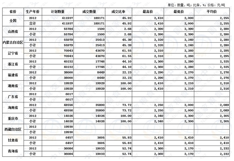 政策性粮食交易结果