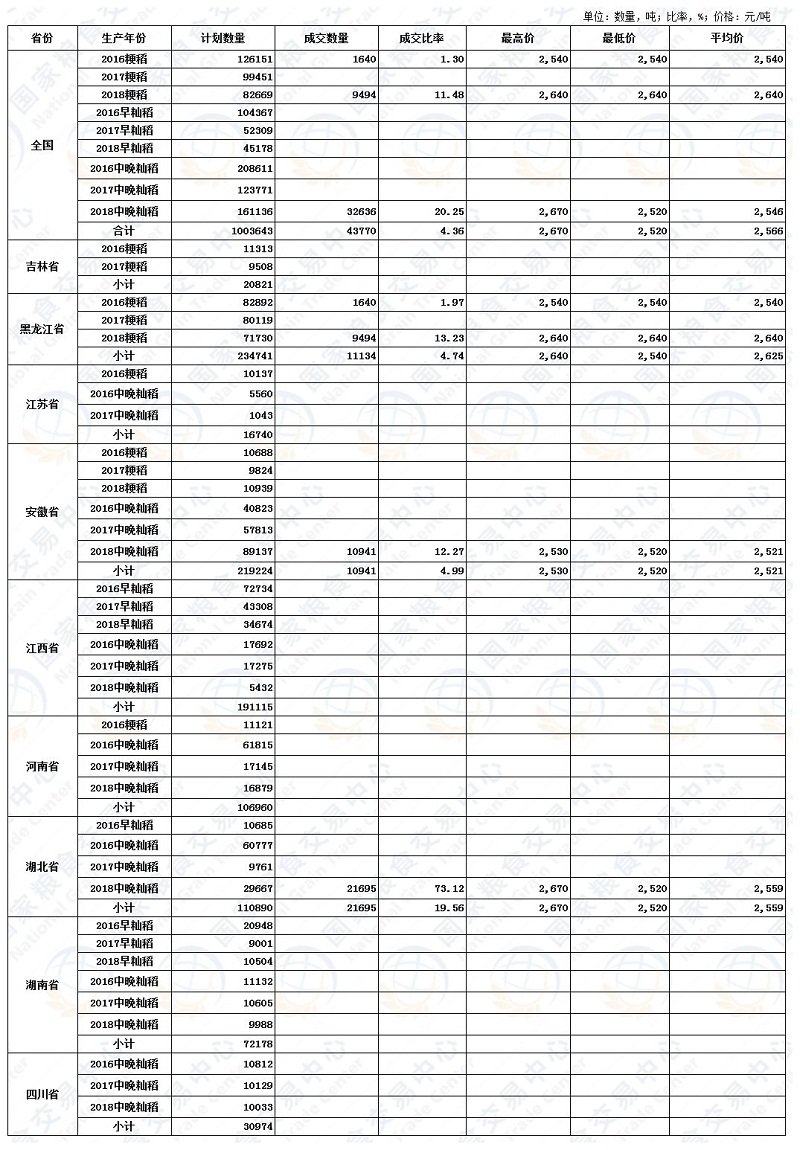 一、最低收购价稻谷(2016-2018年)交易结果