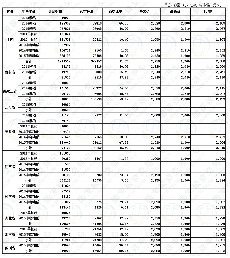二、最低收购价稻谷(2013-2015年)交易结果