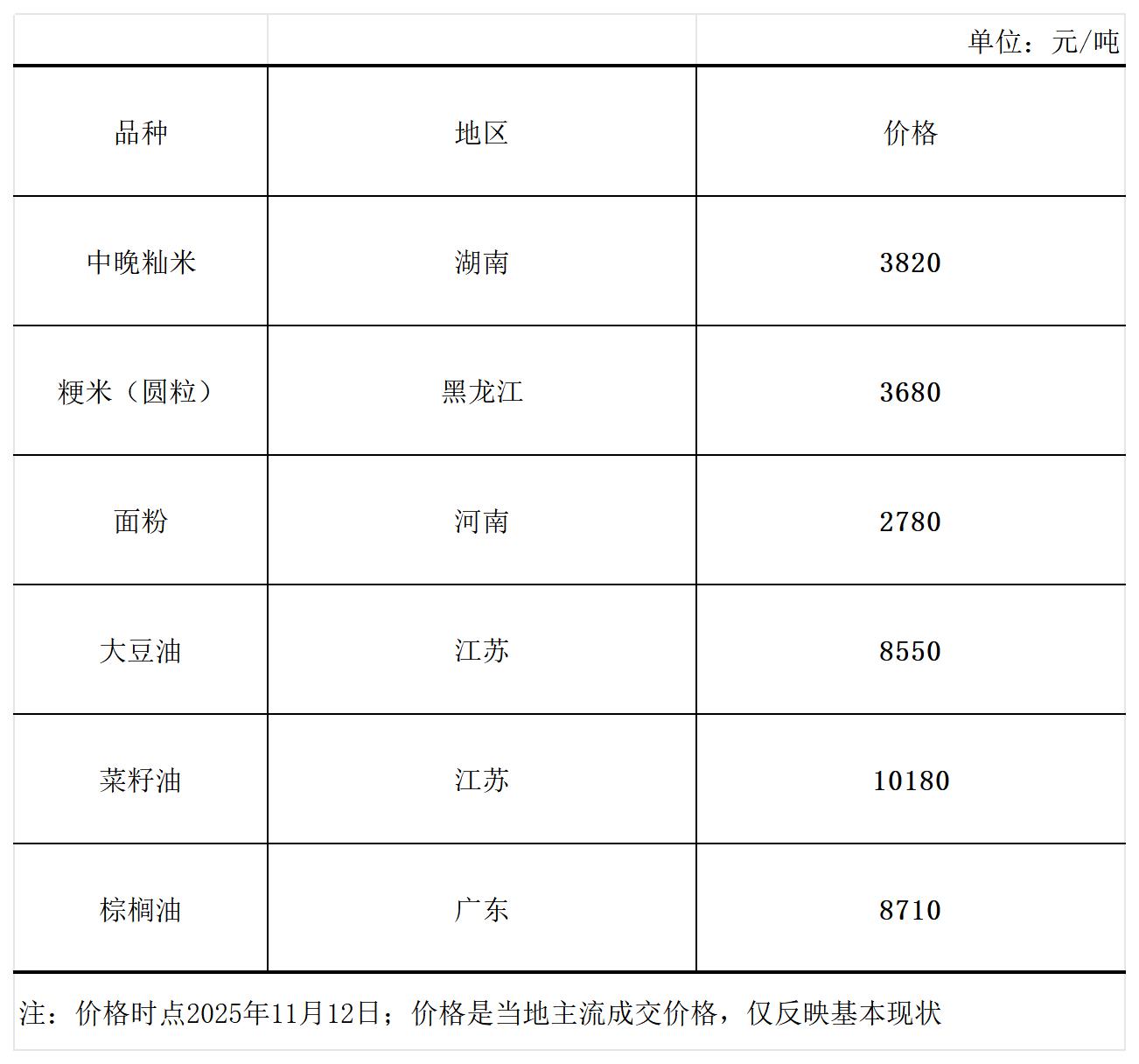 主要粮油商品市场价格周报(11月12日)