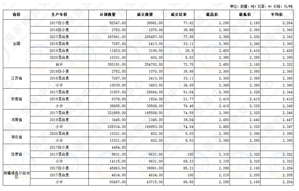 政策性粮食交易结果