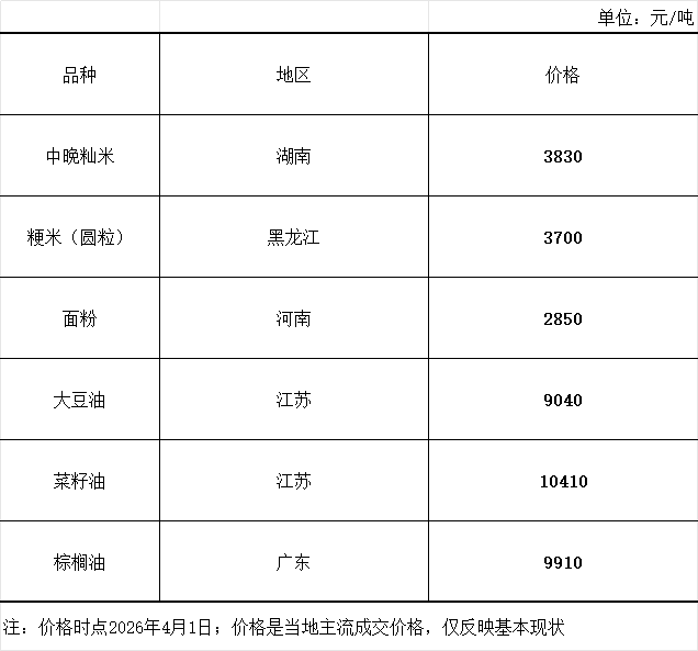 主要粮油商品市场价格周报(4月1日)